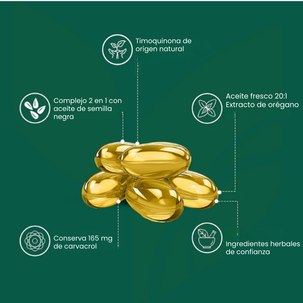 Están formuladas con aceite de orégano concentrado (6.000 mg) y otros extractos vegetales para ayudar a: